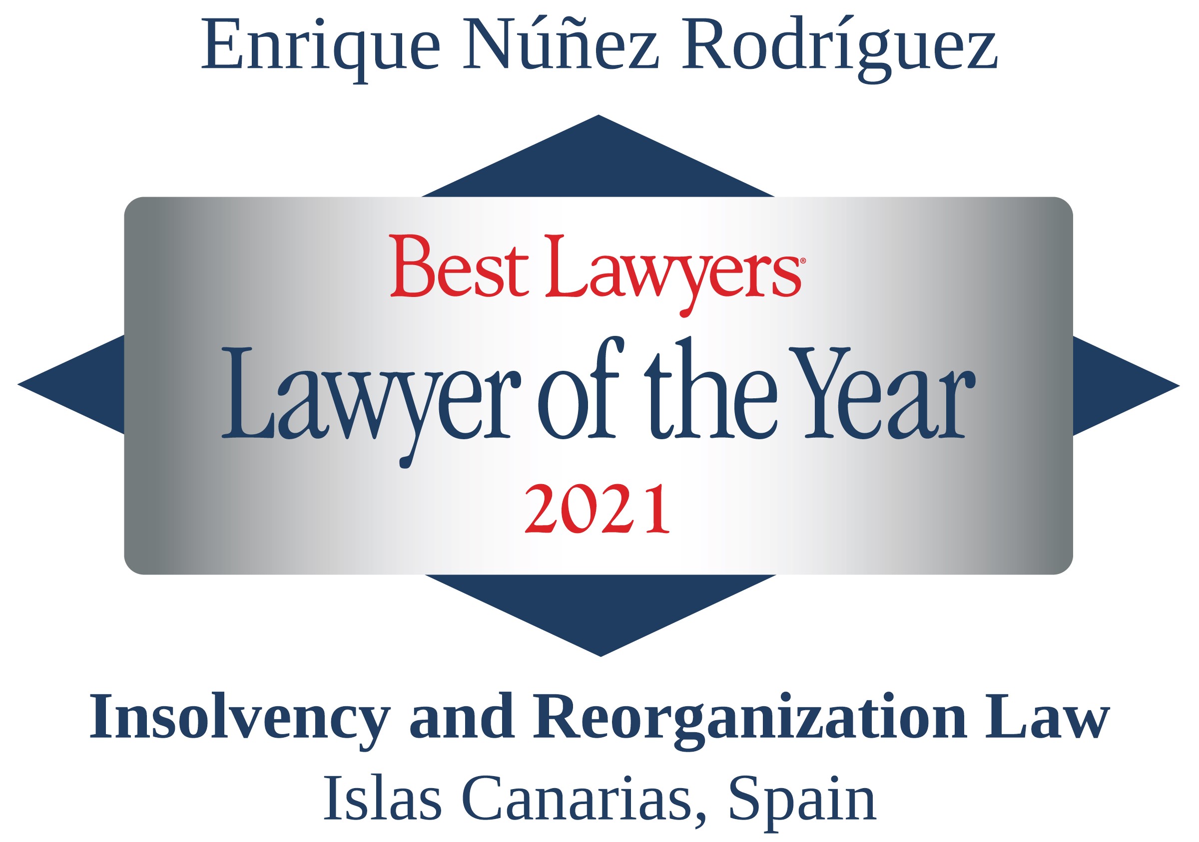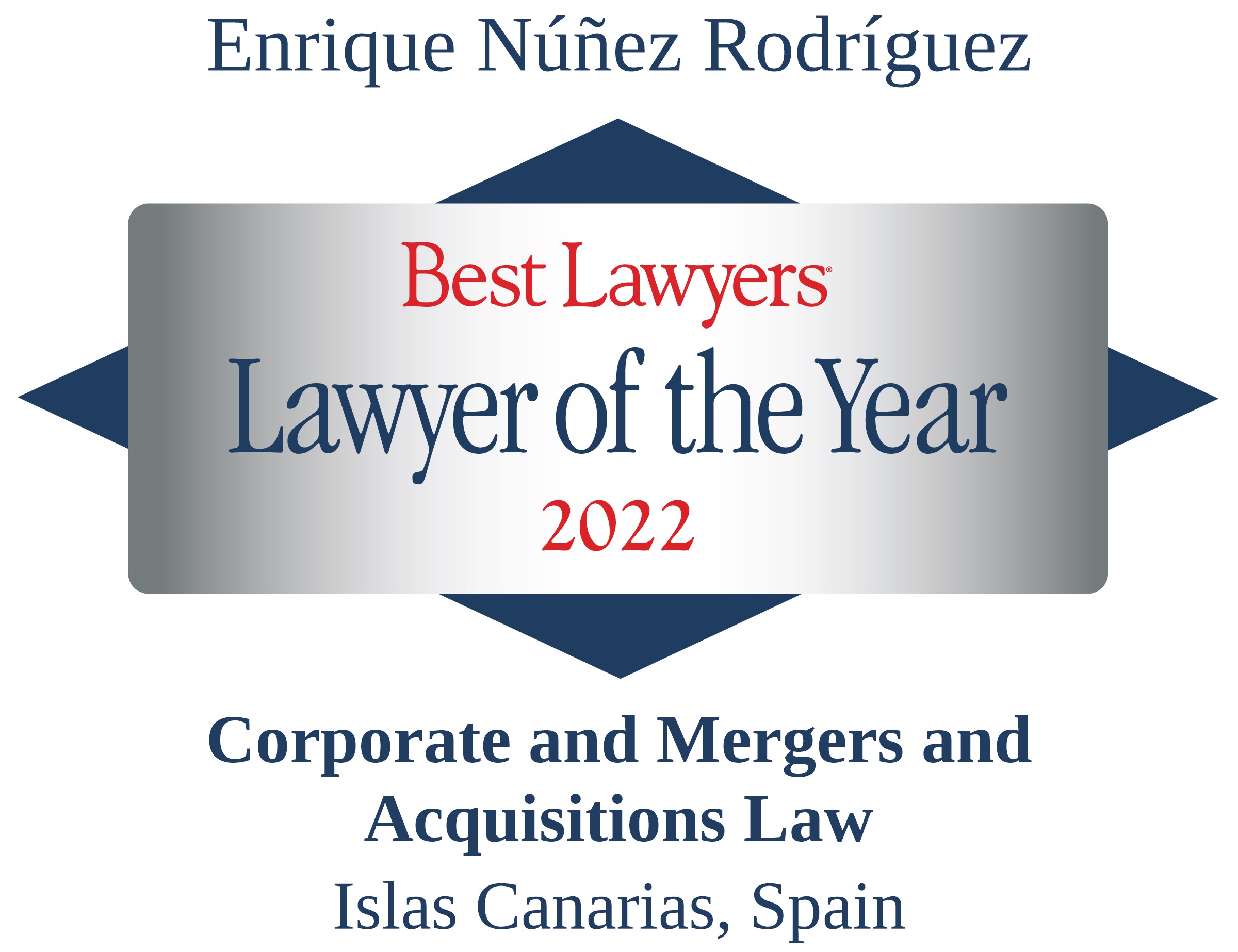 Reconocido por el directorio internacional Best Lawyers in Spain en 2020, 2021 y 2022 en las prácticas de Derecho de Sociedades, Fusiones y Adquisiciones, Gobierno Corporativo, Cumplimiento y Derecho de Insolvencia. Reconocido por Best Lawyers «Abogado del Año» en Las Islas Canarias en los ejercicios 2021 (en Derecho de Insolvencia y Reestructuraciones) y en 2022 (en Derecho de Sociedades, Fusiones y Adquisiciones, Gobierno Corporativo y Cumplimiento).